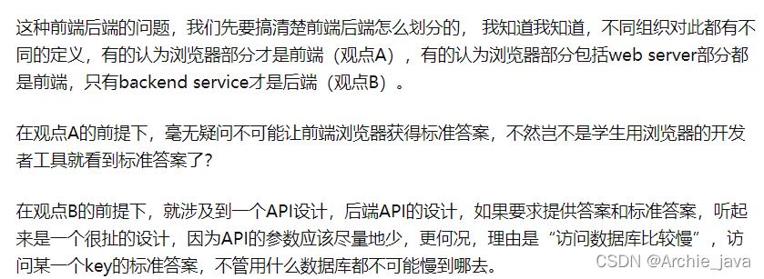 我认为标准答案没必要传给他 ,因为他可以根据我传给他的试卷在数据库查到.但是他认为查询数据库特别慢.